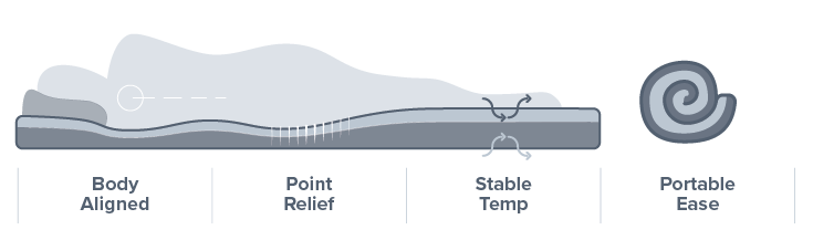 FOAMY FEATURES INTEGRATED COMPRESSION HARNESS: The Foamy's durable clips & straps make it easy to pack small. EASY CARRY HANDLE: Grab & go, a durable handle makes transport a breeze. WELCOME MAT: When the Foamy is unrolled, the compression harness doubles as a welcome mat. Use it as a dry, flat platform to change on. LINKING CLIPS: The handy connector clips on the sides of the Foamy make it easy to expand your sleeping space when you're rolling with a plus one. RUGGED CONSTRUCTION: Waterproof lower fabric encases the bottom of the mattress, keeping you and the memory foam dry even when it starts to get soggy out. |